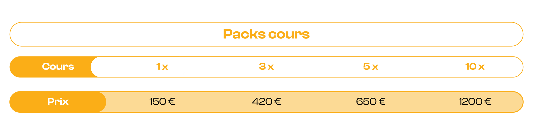 Réserve un pack de plus de 3 cours et bénéficie de réductions exclusives. En plus, tu peux offrir des cours à tes proches, sans qu'ils aient à choisir leur date tout de suite ! Clique sur ce bouton pour découvrir ces options et rider sans prise de tête !🎁