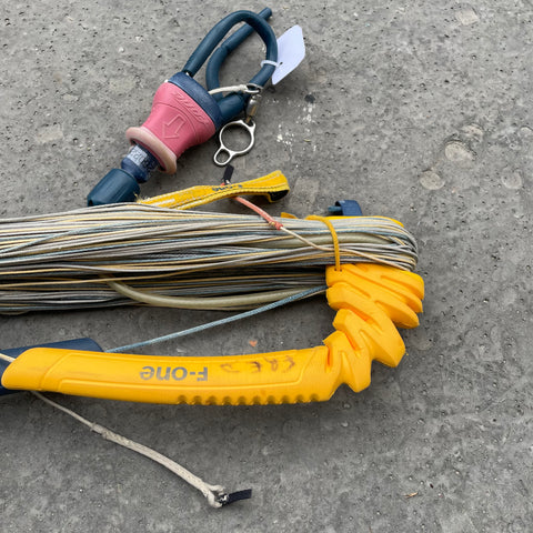 Description de l'état : Barre de kitesurf étalonnée, en bon état avec quelques marques d'usage. Rien n'a signaler sur les lignes.
